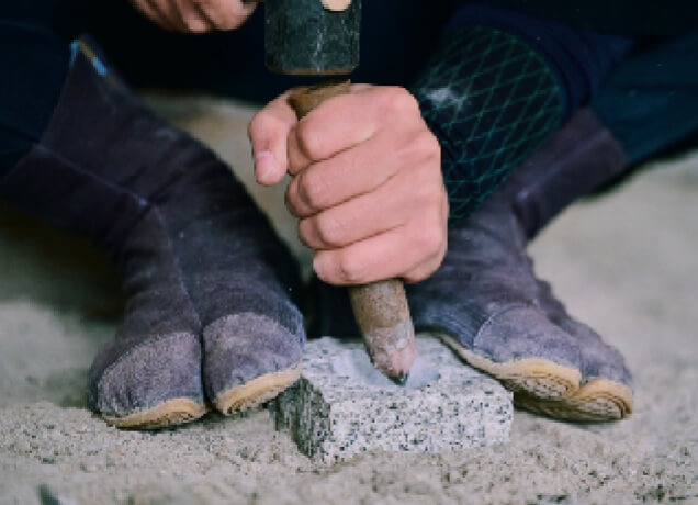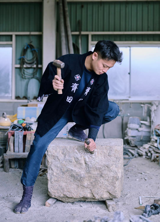 120年以上にわたり石と向き合ってきた当社のその技と精神は、5代目と6代目へと受け継がれ、今も現役の石工としてこの地に立ち続けています。